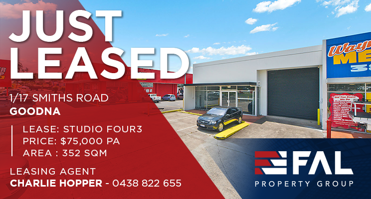 FAL Property Group is pleased to announce the successful lease of 1/17 Smiths Road, Goodna. Located just off the Ipswich Motorway, the property will provide the new tenant with fantastic exposure to one of Goonda’s major...