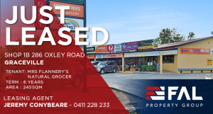 FAL Property Group is pleased to announce the successful 6 year lease of Shop 1B, 286 Oxley Road, Graceville For more information, please contact Jeremy